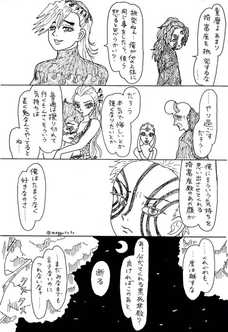 鬼滅の刃 猗窩座中心上弦の鬼で降り月 手描き