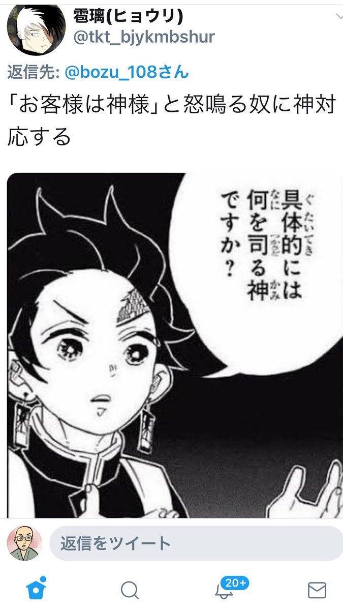 お客様は神様だろうが と言われたら 具体的には何を司る神ですか と鬼滅の刃の迷言で返したいっていう与太話 togetter