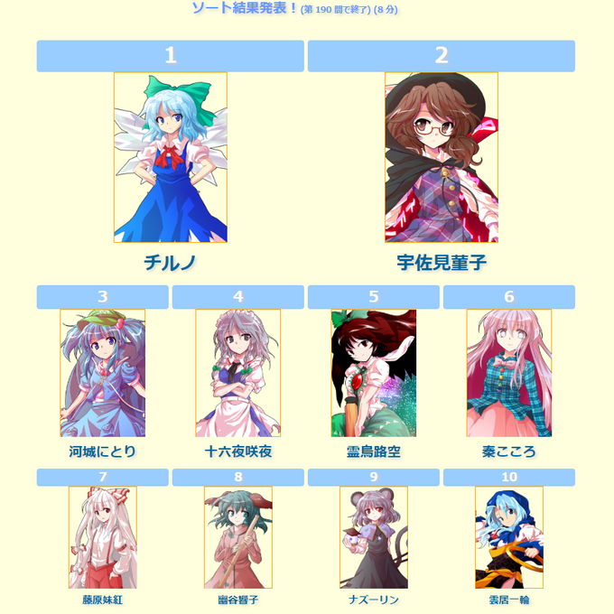 東方キャラソート結果 何回やるんだよ 84459242 完全無料画像検索のプリ画像 bygmo