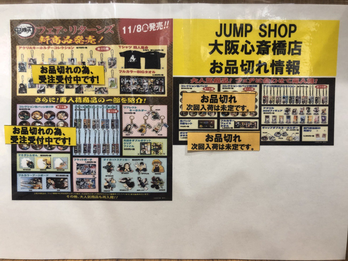 ジャンプショップ jump shop 公式 twitterren 鬼滅の刃 フェア在庫状況 jump shop大阪梅田店の在庫状況は 写真の通りとなります 予想を遥かに上回るご好評をいただき 品薄となり大変申し訳ございません 何卒よろしくお願いいたします
