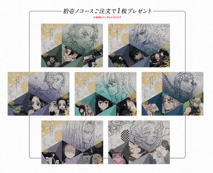m on twitter 交換 譲渡 鬼滅の刃 譲 画像1 ufotable dining 7期 しのぶ 炭治郎 善逸 カナヲ アオイ 無惨 魘夢 下弦の鬼 ランチョン お楽しみくじ缶バッジ クリアファイル おすそ分けポスカ ポスカセットa b 下段はバラ 求 固定ツイのダイニング カフェ