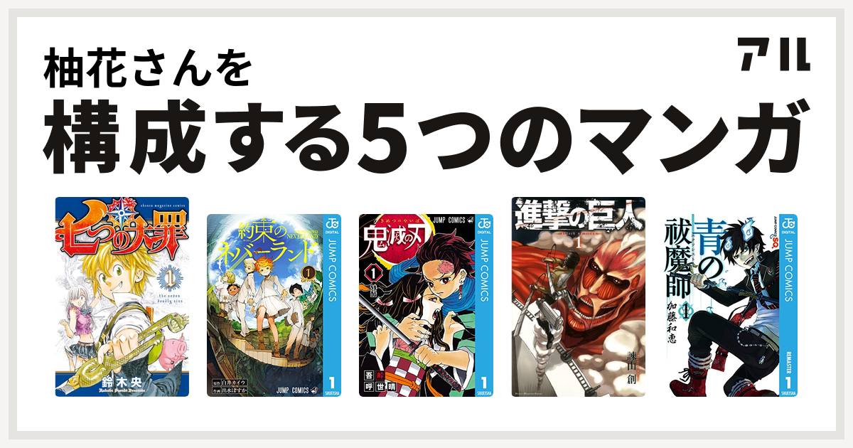 柚花さんを構成するマンガは七つの大罪 約束のネバーランド 鬼滅の刃 進撃の巨人 青の祓魔師 私を構成する5つのマンガ アル