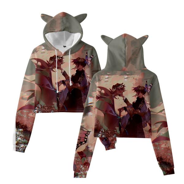 新品 鬼滅の刃 パーカー ショート丈 レディース 女性用 フード付き 竈門炭治郎 グッズ 冬服 ウエア