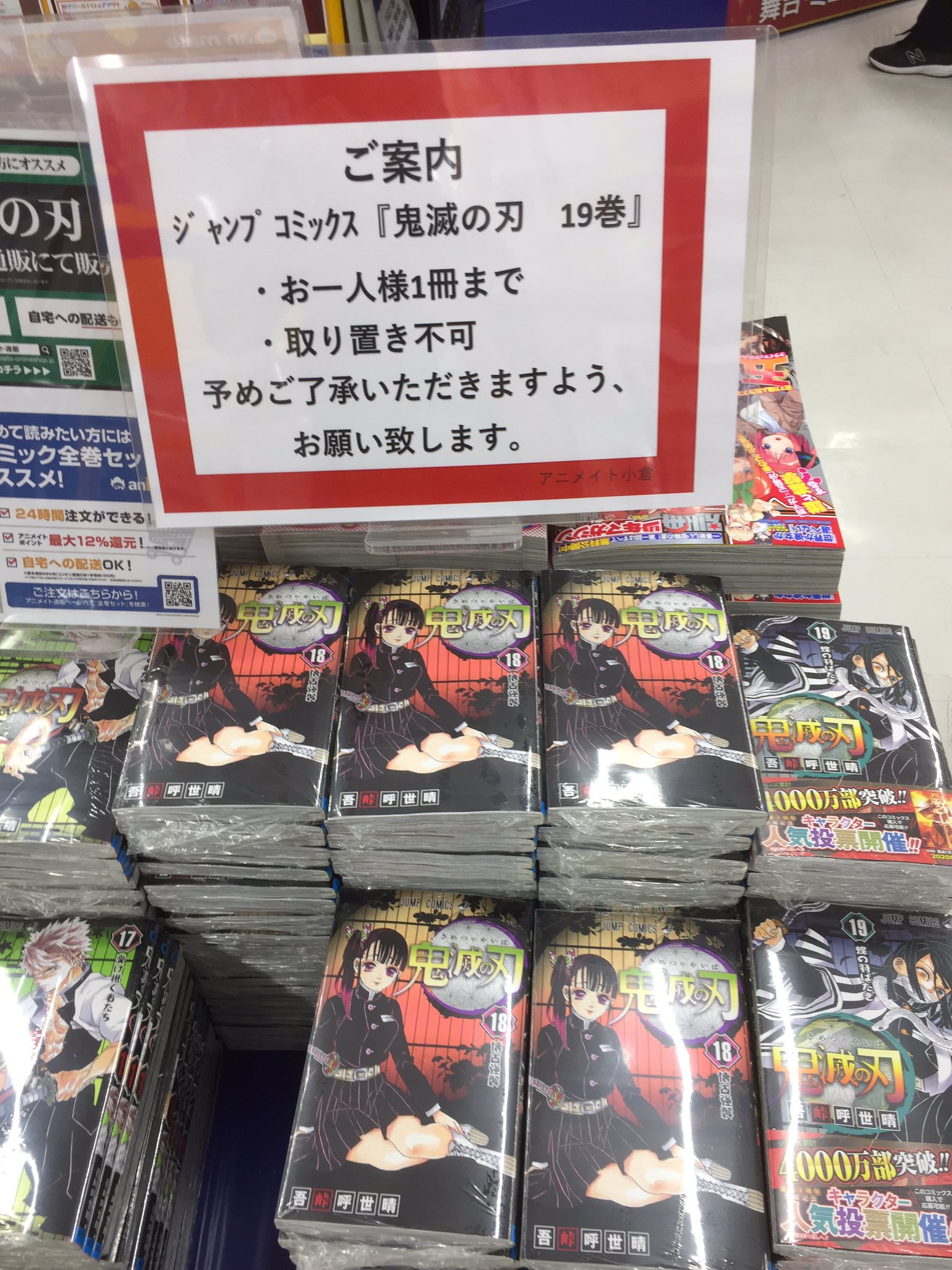 アニメイト小倉 年中無休 ツイステフェア3 18 木 開催 on twitter コミック入荷案内 鬼滅の刃 1 19巻が再入荷したクラ 19巻は購入制限がありますのでご注意下さい 鬼滅の刃 コミック ジャンプ