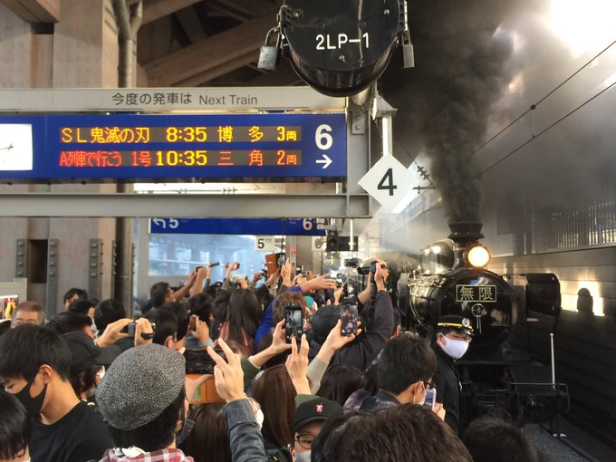 jr九州 sl鬼滅の刃 運行開始 無限列車が無事に博多駅へ到着 1500人のファンが迎える トラベル watch