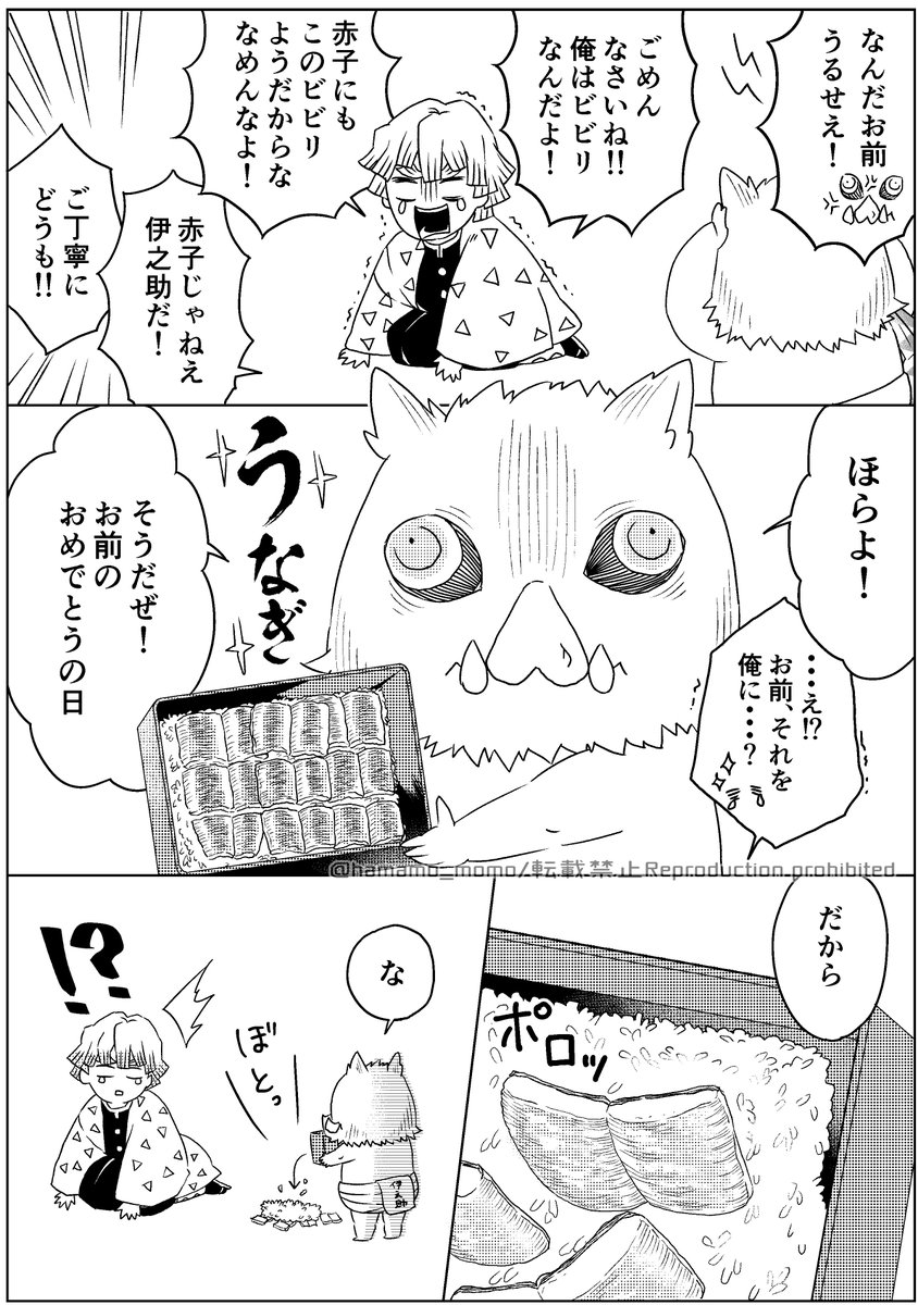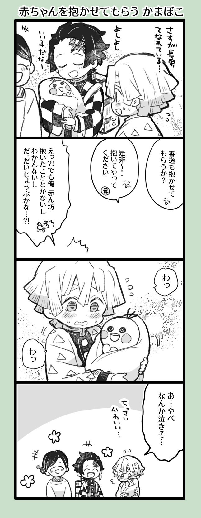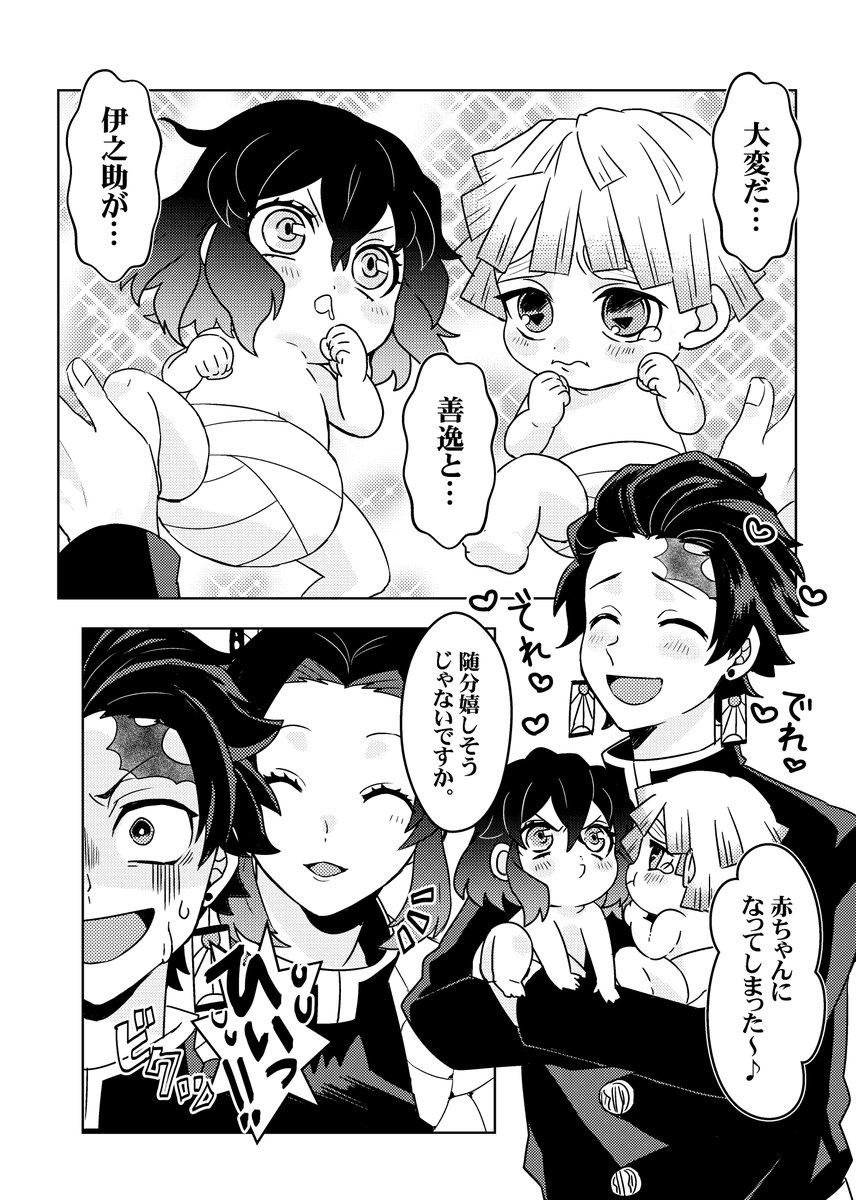 めざし 乗車済 on twitter 炭治郎さんと善逸と伊之助と赤ちゃんの漫画です