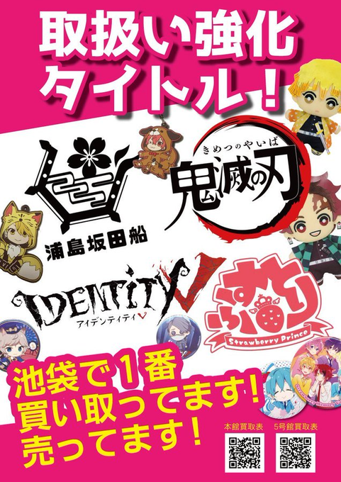 らしんばん池袋本店 ハレザサイド on twitter らしんばん池袋本店5号館b1fキャラグッズフロア 買取情報 鬼滅の刃 期間限定強化買取表を更新致しました 詳しくはコチラ https t co rqo7vqrmpr らしんばん池袋5号館の買取表一覧はコチラ https t co