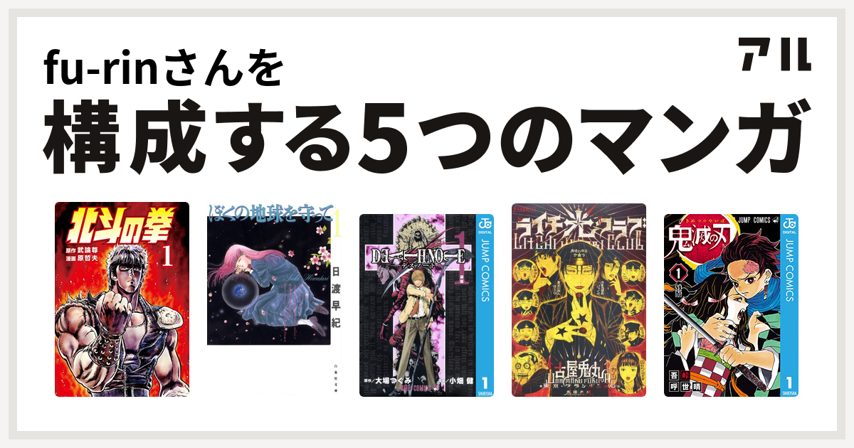 fu rinさんを構成するマンガは北斗の拳 ぼくの地球を守って death note ライチ 光クラブ 鬼滅の刃 私を構成する5つのマンガ アル