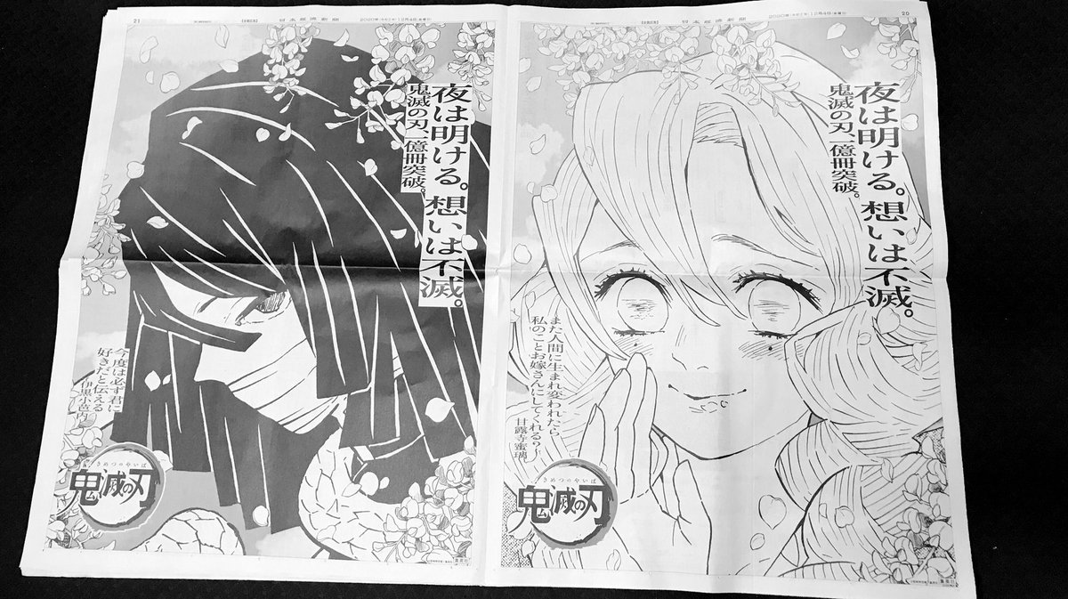 鬼滅の刃 新聞全面広告にファン反響 漫画の広告なのに絵がない めっちゃかっこいい 完結巻発売に祝福の声 abema times