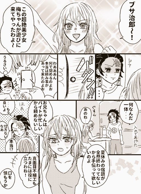 ナナシ 2 on twitter 見た目に無頓着な妓夫太郎お兄ちゃんと無頓着なままでいてほしい梅ちゃん 童磨おじさんに悪気はまったくない 学パロ捏造 https t co fmoaagbpfz twitter twitter demon slayer