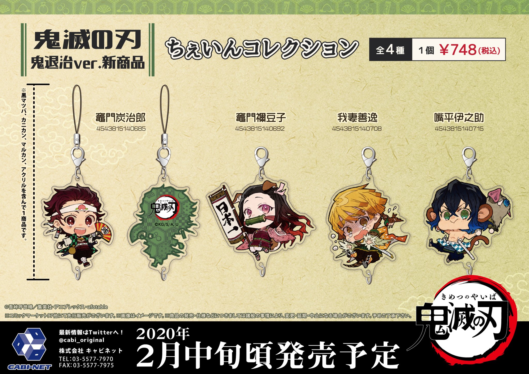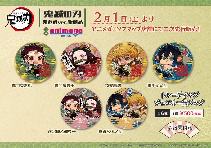 アニメイト町田 on twitter 鬼滅の刃 グッズ予約情報 鬼滅の刃 鬼退治ver 新商品各種が2月中旬頃発売予定 湯のみ 全1 種 トレーディングジュエリー缶バッジ 全6種 ちぇいんコレクション 全4種 ステッカー 全2種 桃太郎一行に扮した