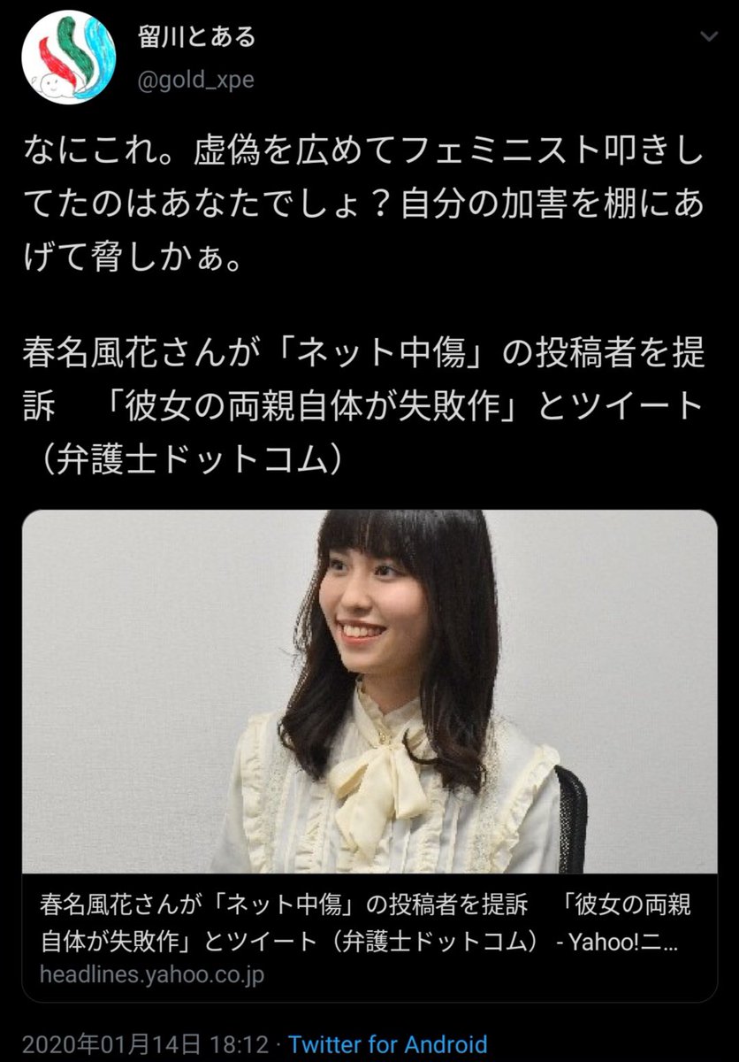 w はるかぜちゃん こと女優の春名風花さんツイッターで誹謗中傷した投稿者の情報開示を勝ち取る togetter