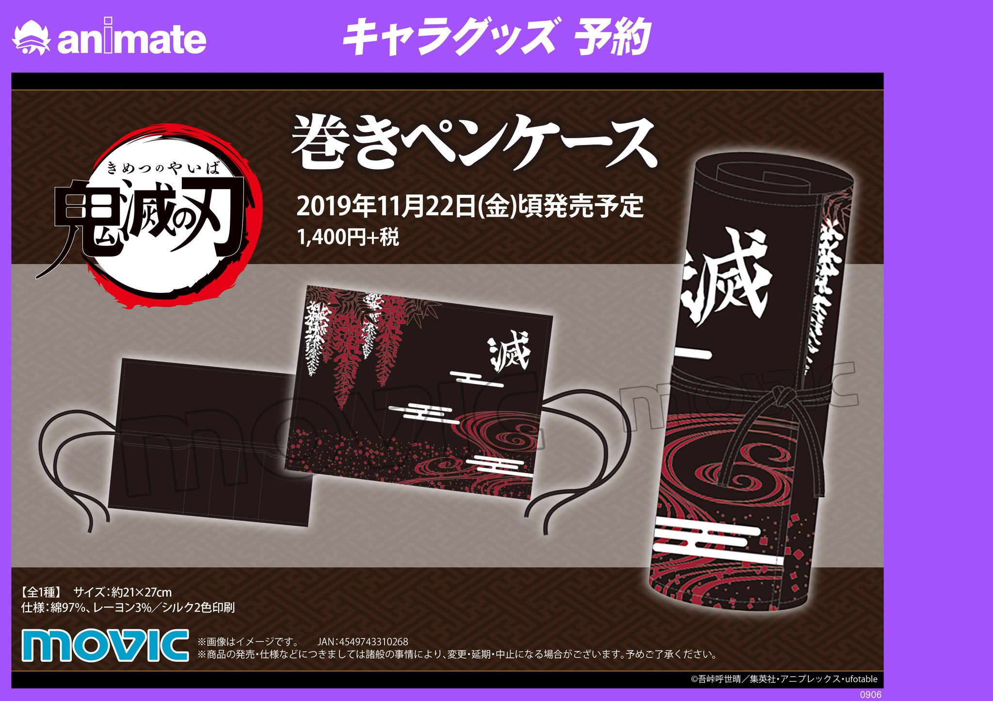 アニメイト新宿ハルク on twitter グッズご予約情報 2019年11月22日頃発売予定 鬼滅の刃 巻きペンケース ご予約受付中カブ シックな絵柄で学校でも職場でも使っていただける布製の巻きペンケースカブ ご予約は新宿店3fへどうぞ 鬼滅の刃