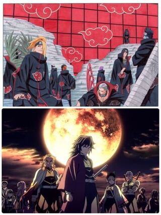 もう知る前の自分に戻れない 鬼滅の刃 アニメop内で月を背に柱達が並ぶシーンが袴の影のせいで全員ガータベルト着用してる様に見える呪いを貴方に togetter