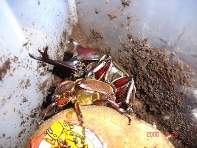 カブトムシを長生きさせるためのハンドペアリング 唯一のメスは羽化不全のため 大事をとってハンドペアリングを行う カブトムシ の幼虫 さなぎの育て方2018年