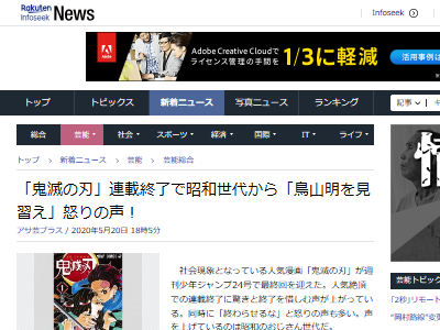 マスゴミ 連載終了した 鬼滅の刃 に昭和世代が 鳥山明を見習え と激怒 そんなこと言ってる奴 どこにもいない オレ的ゲーム速報 刃