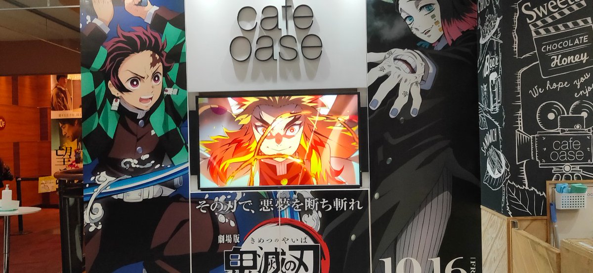 ショウ on twitter 16日公開の映画 劇場版 鬼滅の刃 無限列車編 新宿バルト9の装飾やcafe oaseのコラボが気合入ってます 写真は先日撮ったもの 鬼滅の刃