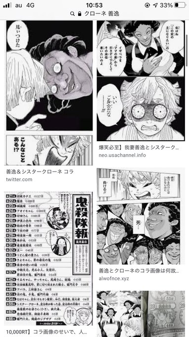 がらい on twitter これらのコラ画像のせいで鬼滅の刃の人気投票にシスタークローネ 約束のネバーランドの人気投票に善逸が入ってるの草生える