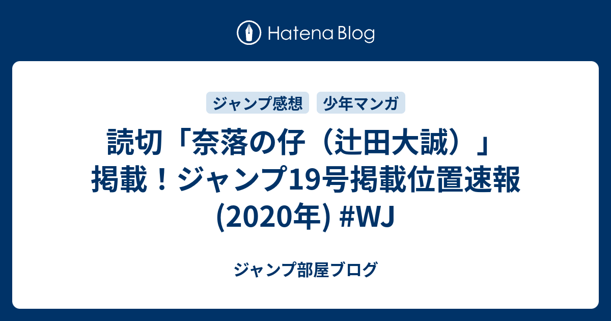 読切 奈落の仔 辻田大誠 掲載 ジャンプ19号掲載位置速報 2020年 wj ジャンプ部屋ブログ