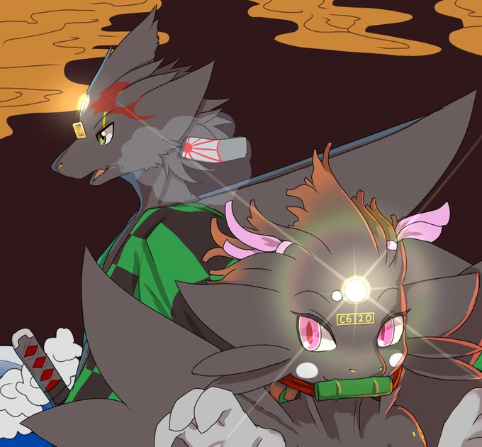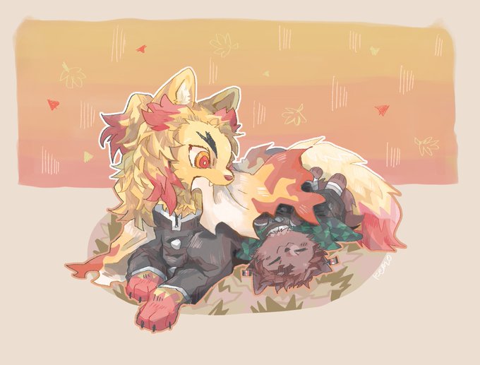 紅花葉 on twitter tos 擬獣化 鬼滅の刃の炭善 狼炭治郎と狐の善逸くんのつもりです 狼だから愛情表現でつい善逸くんのマズルを噛んじゃうたんじろくん と 噛まれて満更でもない様子のぜんくん