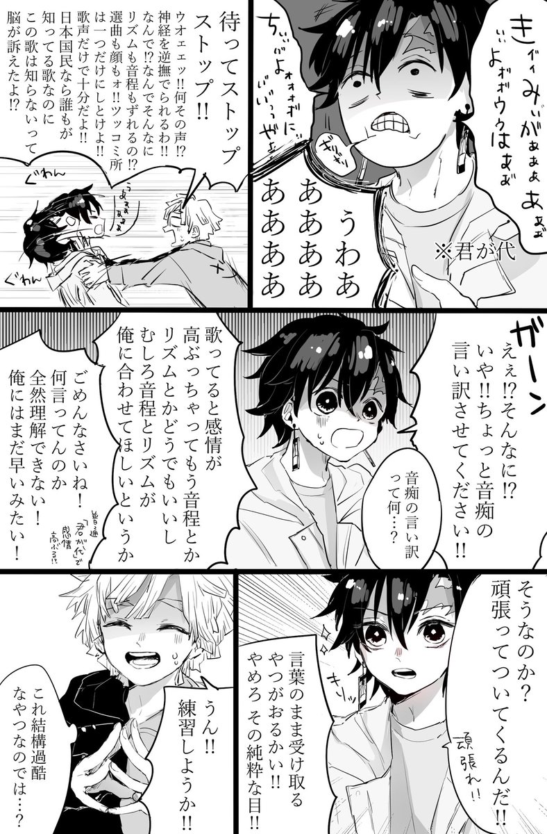 鬼滅の刃 もしも禰豆子が音柱宇随に呼吸法をお願いしたら 音痴なのに大声で歌う炭治郎の歌声を w きめつのやいばline 炭カナ 無限列車編