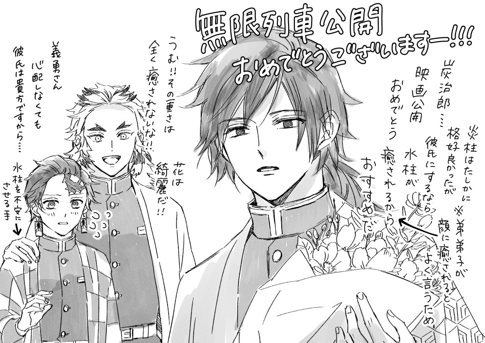 ししょう on twitter お互いに良い奴だと思ってるし良き友であり仲間なんだけど義の事は譲れない錆と煉 と 二人は仲が良いな だけどなんで俺を間に挟むんだ って思ってる義 さびぎゆ れんぎゆ