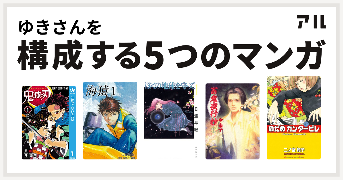 ゆきさんを構成するマンガは鬼滅の刃 海猿 ぼくの地球を守って 百鬼夜行抄 のだめカンタービレ 私を構成する5つのマンガ アル