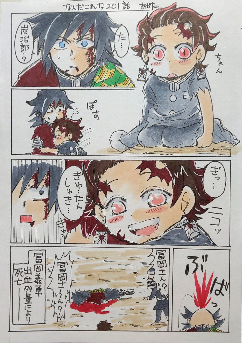 富岡義勇 再掲ネタバレ注意 本誌で鬼になった炭治郎がねずこちゃんみたくちっこくなったら あがた きめつ垢 の漫画