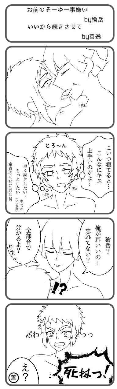 夏の雷兄弟祭り この後30分 ずっと手をつないでた なんか出れたけど これ 甘えるって言えるのか うん 言えるか というかアイツ一刻の間 日輪刀ずっと握ってたから俺殺されるかと思った 獪善というか雷兄弟 手繋いでる時も色々あったけど力尽きたから