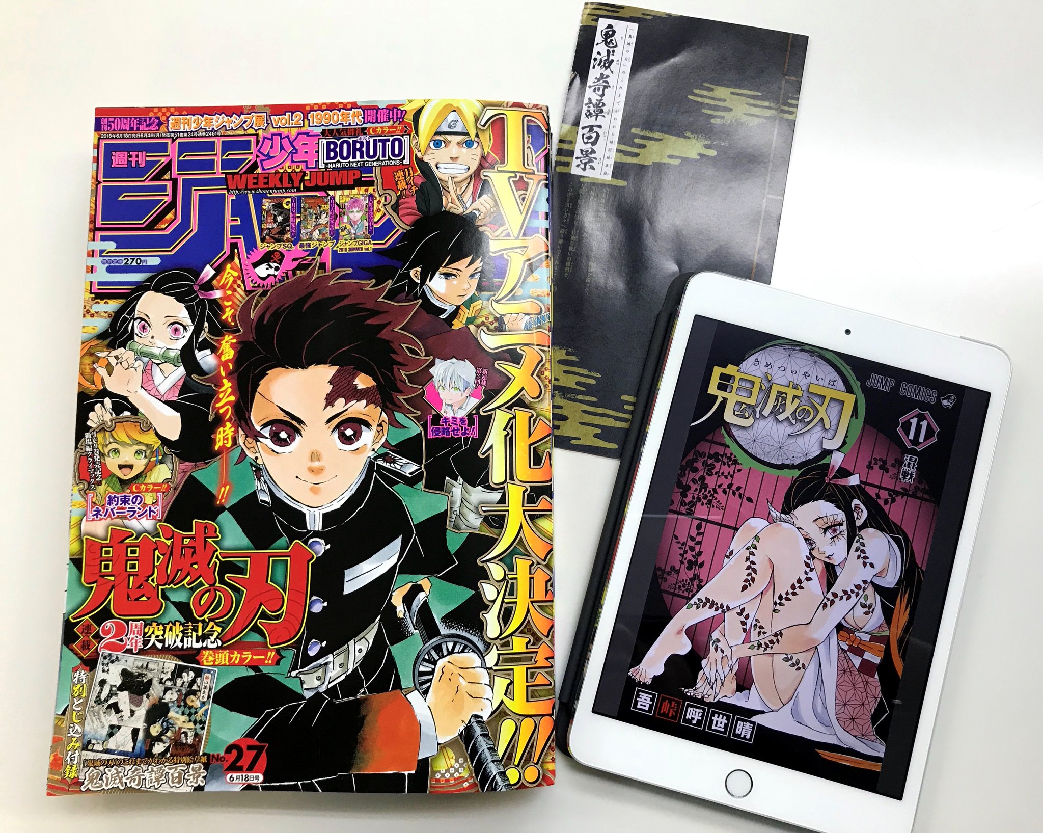 o xrhsths ミコフク sto twitter 大好きな 鬼滅の刃 11巻発売 連載2周年突破記念ジャンプの表紙 巻頭カラー とじ込み付録付き tvアニメ化キタ ゚ ゚ 吾峠先生おめでとうございます 今日は 鬼滅記念日 に設定した方がいいんじゃない 鬼滅の刃112