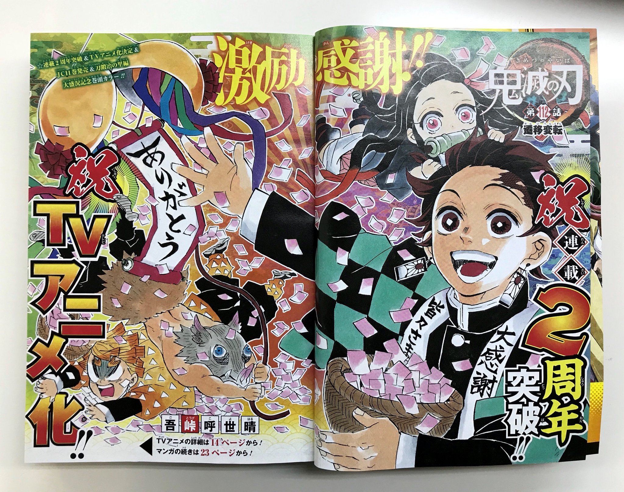 読書とジャンプ ジャンプ感想 鬼滅の刃 第112話 遷移変転 連載2周年突破 テレビアニメ化決定表紙 巻頭カラー