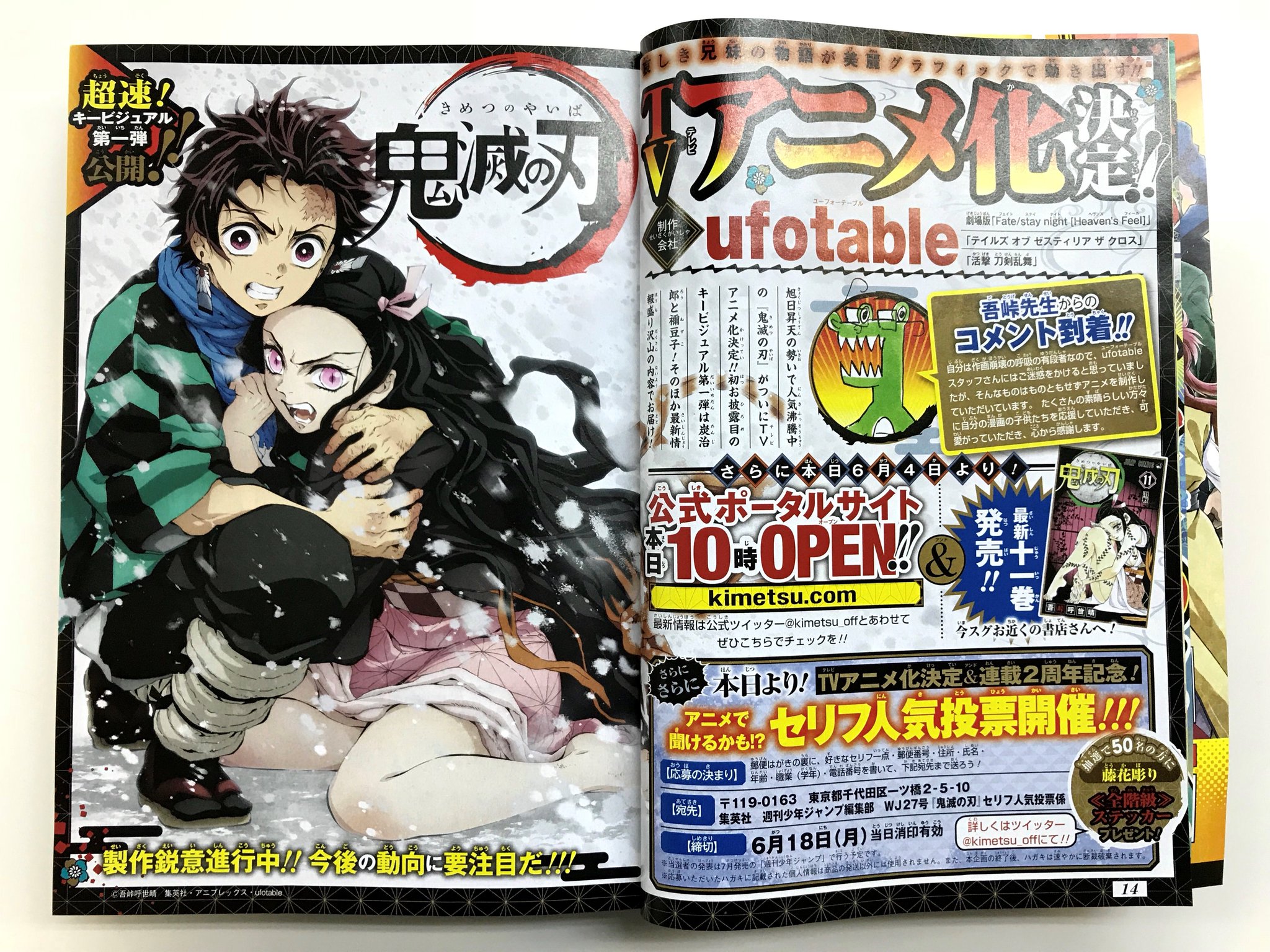 o xrhsths ミコフク sto twitter 大好きな 鬼滅の刃 11巻発売 連載2周年突破記念ジャンプの表紙 巻頭カラー とじ込み付録付き tvアニメ化キタ ゚ ゚ 吾峠先生おめでとうございます 今日は 鬼滅記念日