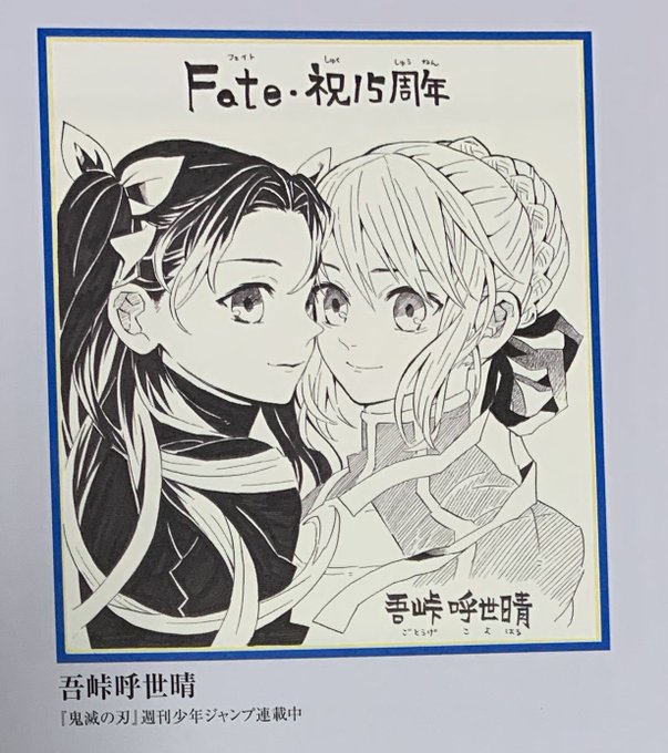 fate stay night 15th celebration project on twitter type moon展 1 fateの会場にて掲載をします寄稿色紙を先行で12月20日の開催日まで毎日公開 本日は 鬼滅の刃 の作者 吾峠呼世晴さんと another などの著者 綾辻行人さんから色紙をいただきました 詳細