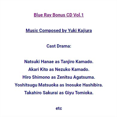 demon slayer kimetsu no yaiba tv animation series volume 7 8 special cd 鬼滅の刃 第七 八巻 特典ディスク ost download version