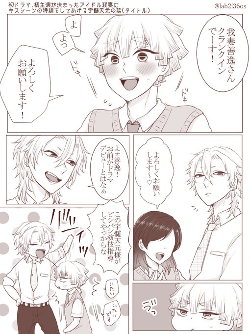 ちよこ sur twitter 炭治郎 善逸 伊之助 玄弥がアイドル 街裏さん hrak gooday の小説の1場面を描かせていただきました アイドル4人がインタビューを受けてます 玄弥は墓穴を掘りがちな子