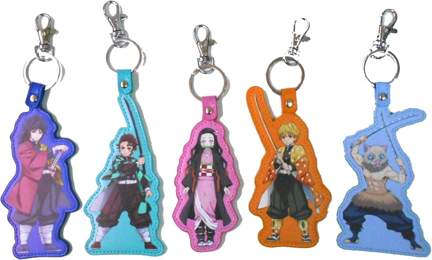 amazon co jp ヒラ商 鬼滅の刃 puキーホルダー 鬼滅の刃 グッズ フェイクレザー プリント キーホルダー 竈門 禰豆子 竈門炭治郎 我妻 善逸 富岡義勇 嘴平 伊之助 5種セット ホビー