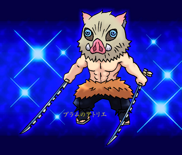 プラムのアトリエ 鬼滅の刃 第16話 嘴平 伊之助 猪の頭 日輪刀 二刀流 ミニキャラ ちびキャラ イラスト