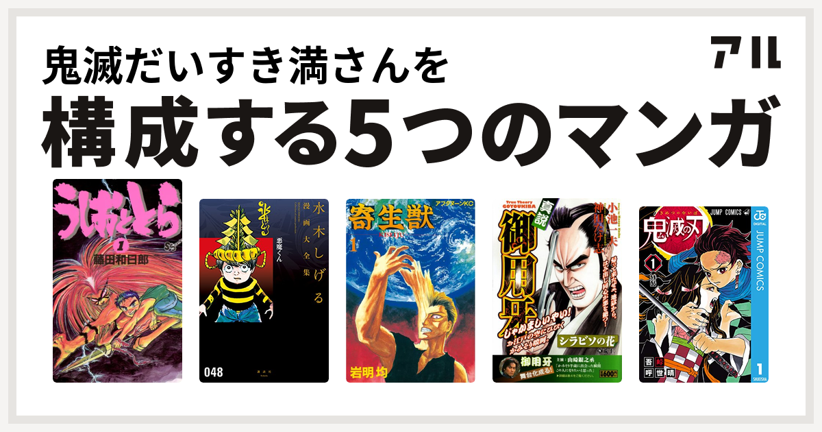 鬼滅だいすき満さんを構成するマンガはうしおととら 悪魔くん 水木しげる漫画大全集 寄生獣 御用牙 鬼滅の刃 私を構成する5つのマンガ アル
