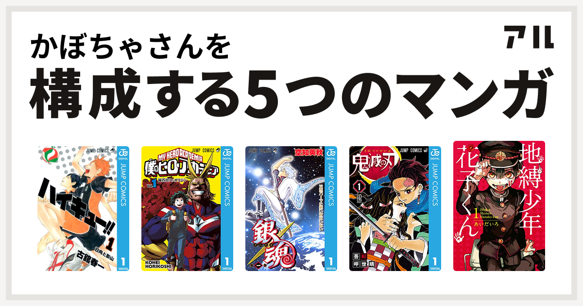 かぼちゃさんを構成するマンガはハイキュー 僕のヒーローアカデミア 銀魂 鬼滅の刃 地縛少年 花子くん 私を構成する5つのマンガ アル