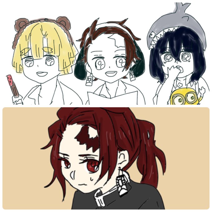 haru oekaki instagram post photo かまぼこ隊 illustration illust イラスト 模写 お絵描き 鬼滅の刃 竈門炭治郎 我妻善逸 嘴平伊之助 かまぼこ隊 女装 鬼殺隊 ブサイク そこがいい 着物 ポニーテール ツインテール gramho com