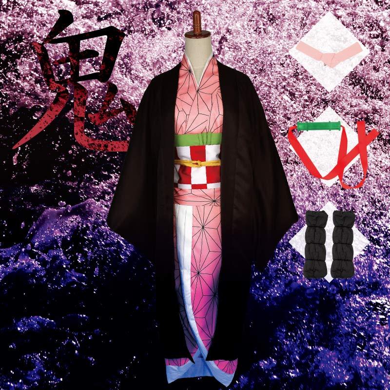 即納 3サイズ 鬼滅の刃 コスプレ 竈門禰豆子 ねずこ 禰豆子 ハロウィン 着物 10点セット ペア お揃い コスチューム キャラクター ha
