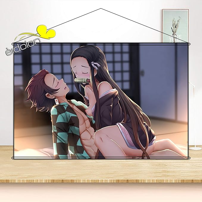 amazon manles タペストリー 鬼滅の刃 胡蝶しのぶ ポスター 掛ける絵 巻物 軸物 アニメ おしゃれ 萌え 90cmx60cm アニメ 萌えグッズ 通販