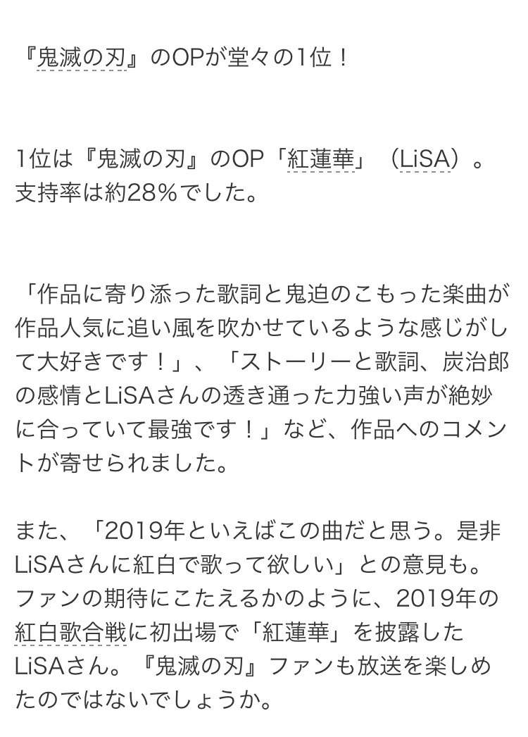 tvアニメ 鬼滅の刃 主題歌 lisa 紅蓮華 が1位 歌詞 検索サイト 歌ネット が 2020年 年間ランキング を発表 株式会社ページワンのプレスリリース
