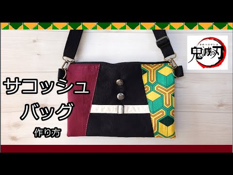 鬼滅の刃 サコッシュバッグ a4コピー用紙を使って簡単に裁断 直線縫いだけでok demon slayer diy 鬼滅之刃