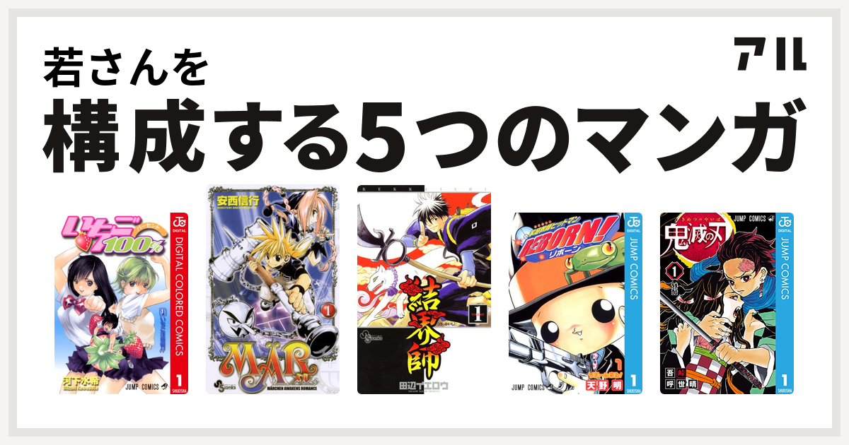 若さんを構成するマンガはいちご100 カラー版 結界師 家庭教師ヒットマンreborn 鬼滅の刃 私を構成する5つのマンガ アル