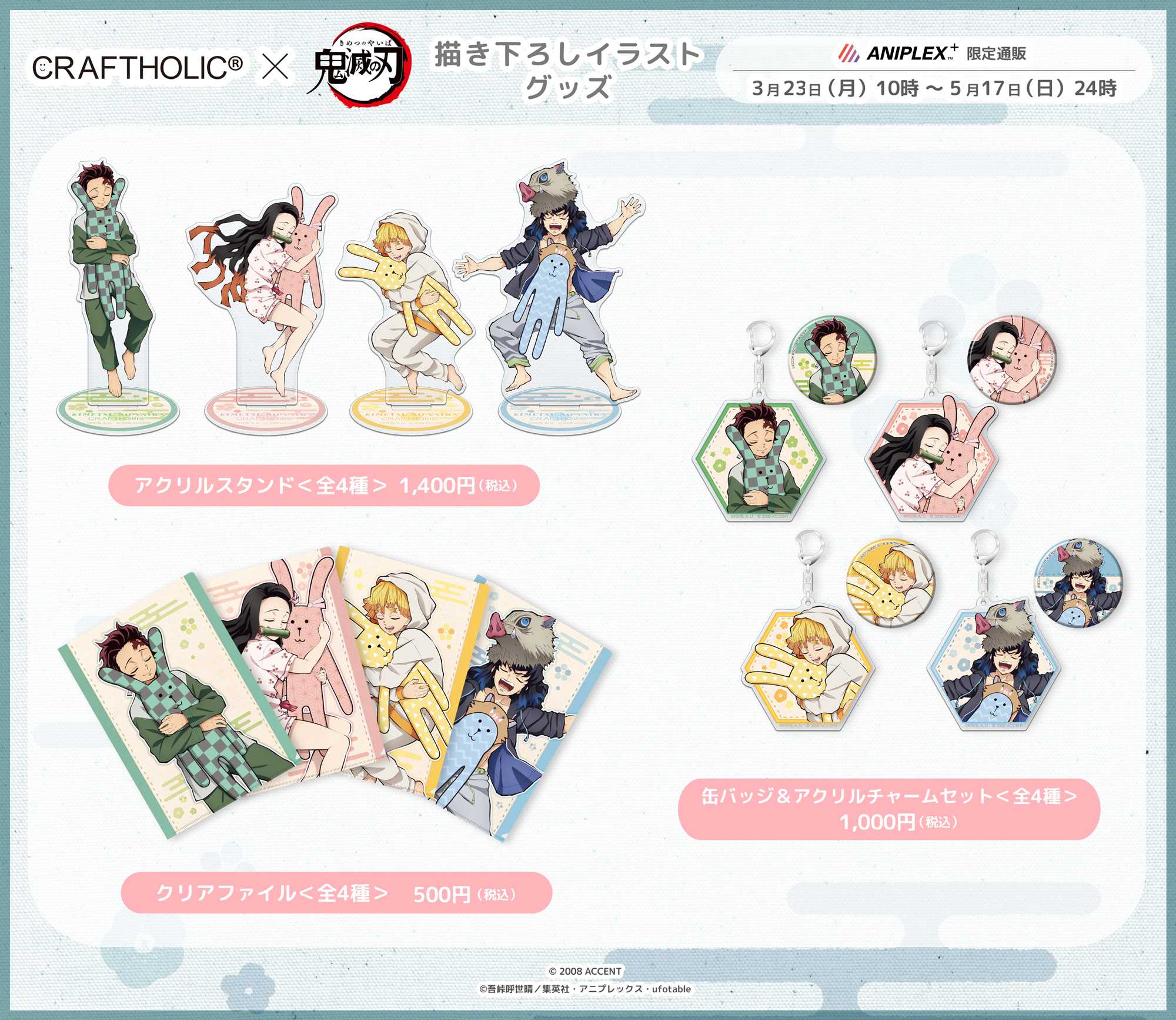 鬼滅の刃公式 on twitter グッズ情報 craftholic 鬼滅の刃 3 23 月 10時よりaniplex にてコラボ商品が受注開始 詳細はこちら https t co r7rg0uekzz 抱き枕 以外の商品は数量限定で tvアニメ 鬼滅の刃 全集中展 東京会場限定通販 でも販売致し