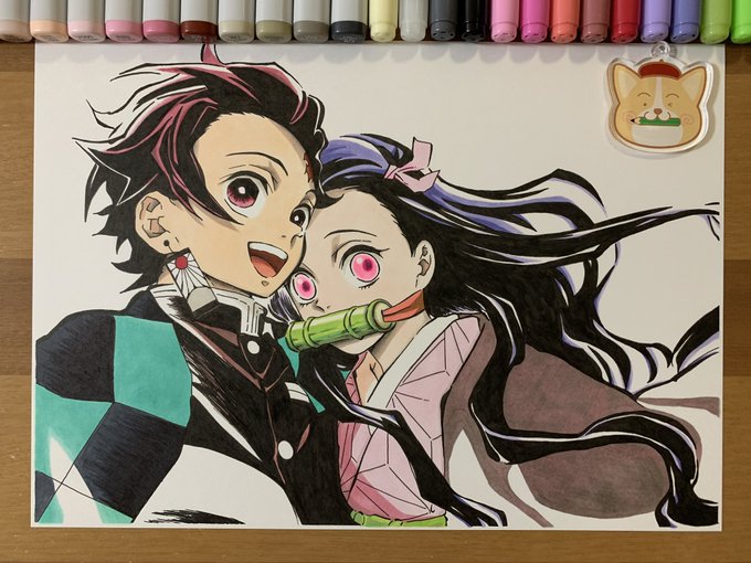yui on twitter 鬼滅の刃 完成しました 竈門炭治郎 竈門禰豆子 鬼滅の刃 コピック 模写 アナログ絵