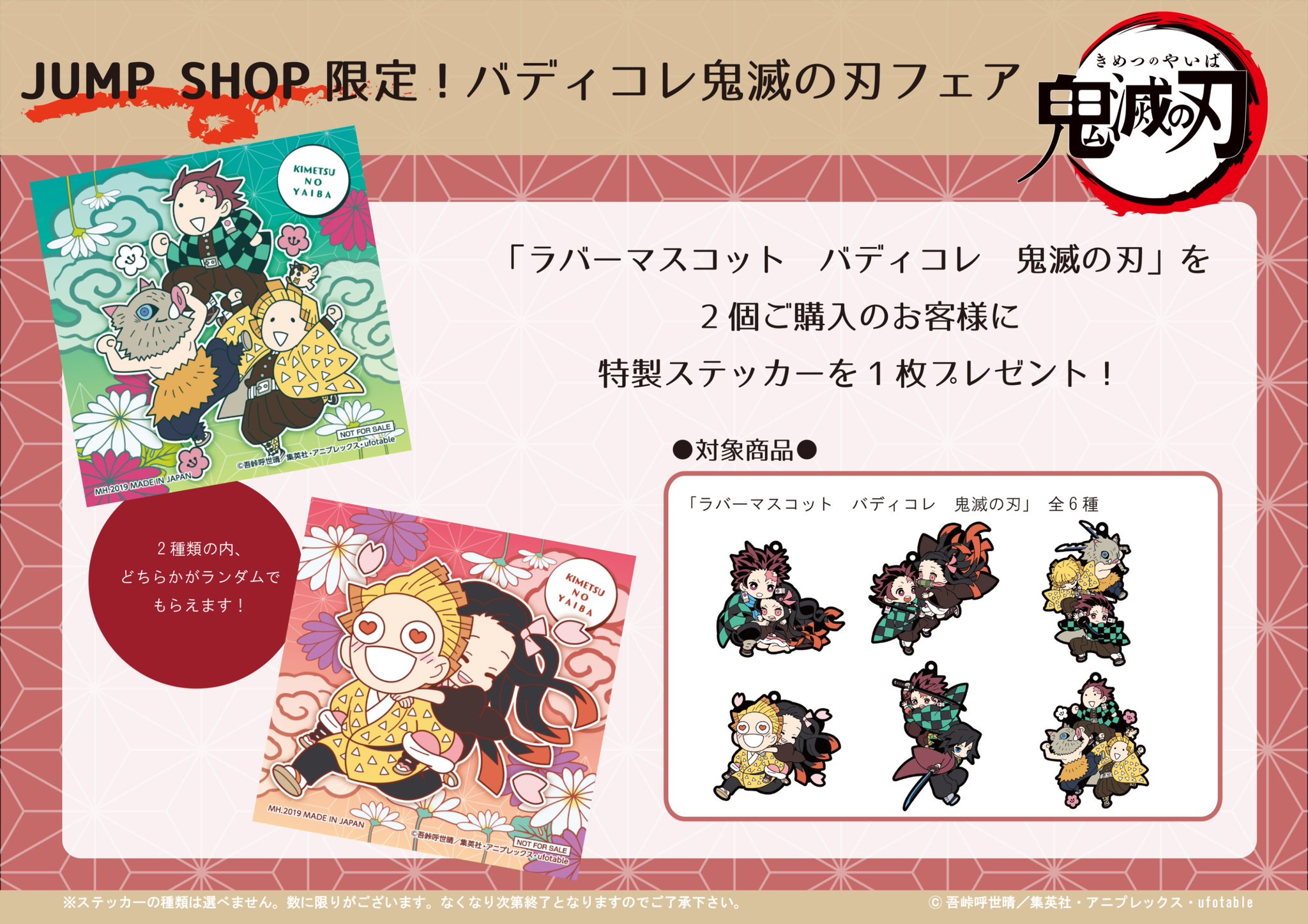 鬼滅の刃 ラバーマスコット バディコレ box 6個入り 再販 ジャンプキャラクターズストア 集英社