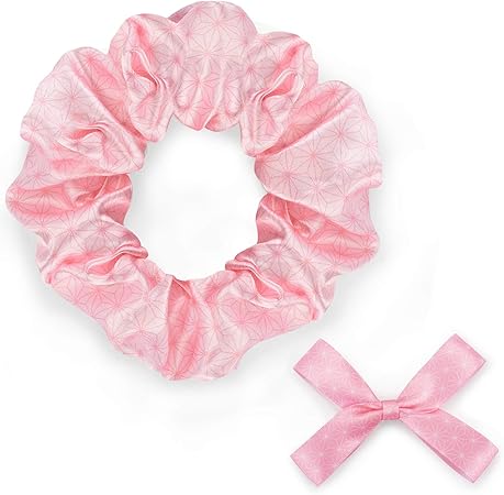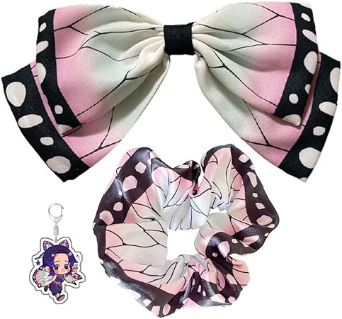 shinpro 鬼滅の刃 シュシュ 蝶結び リボン ヘアクリップ 髪飾り ヘアゴム ヘアアクセサリー 誕生日プレゼント コスプレ 萌えグッズ 可愛い 2点セット ピンク