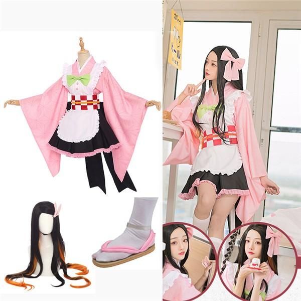 鬼滅の刃 きめつのやいば 竈門 禰豆子 かまどねずこ メイド服 ウィッグ 髪飾り 下駄追加可